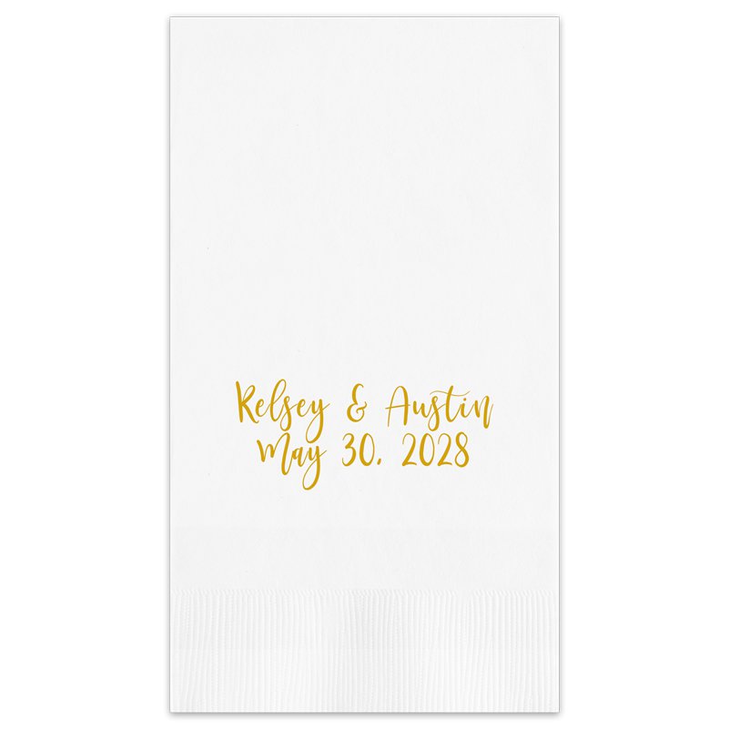 The Enchanted Guest Towel - Printed adds a touch of sophistication to any special event. These high-quality, 3-ply towels feature two lines of customizable text, giving you the freedom to choose from a variety of fonts and colors. Ideal for weddings, bridal showers, or anniversaries, the Enchanted Guest Towel ensures your event details are both stylish and personalized. Available in multiple paper and ink color options, this elegant towel is perfect for enhancing the ambiance of your celebration.