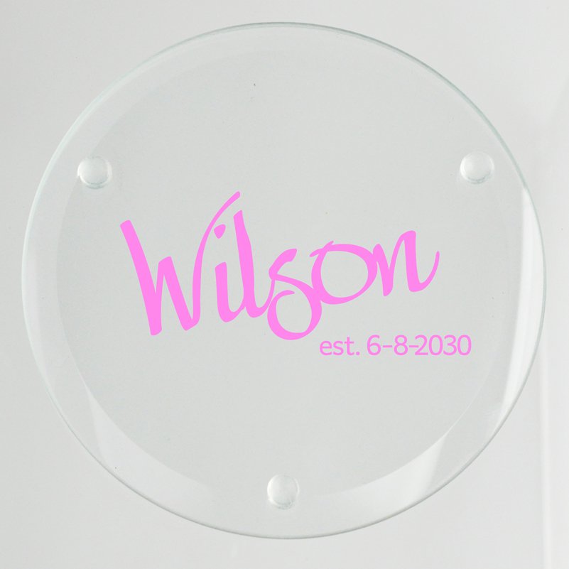 The Established Glass Coaster includes a set of four, glass coasters (4" round x 1/8" thick). Choose from 10 popular font styles and add up to two lines of text. Your personalization will be digitally printed with precision. These coasters are long-lasting.